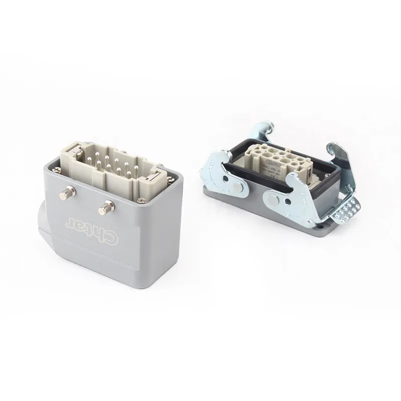 Penyambung Tugas Berat CHTAR 10 Pin TS ini digunakan secara meluas dengan HE HD HEE, HDD. Ia adalah bahagian perumahan asas dan wanita dari penyambung tugas berat. Ia diperbuat daripada aluminium dan direka bentuk sebagai gesper tunggal. Jenis blok terminal tugas berat yang mesra pengguna.
