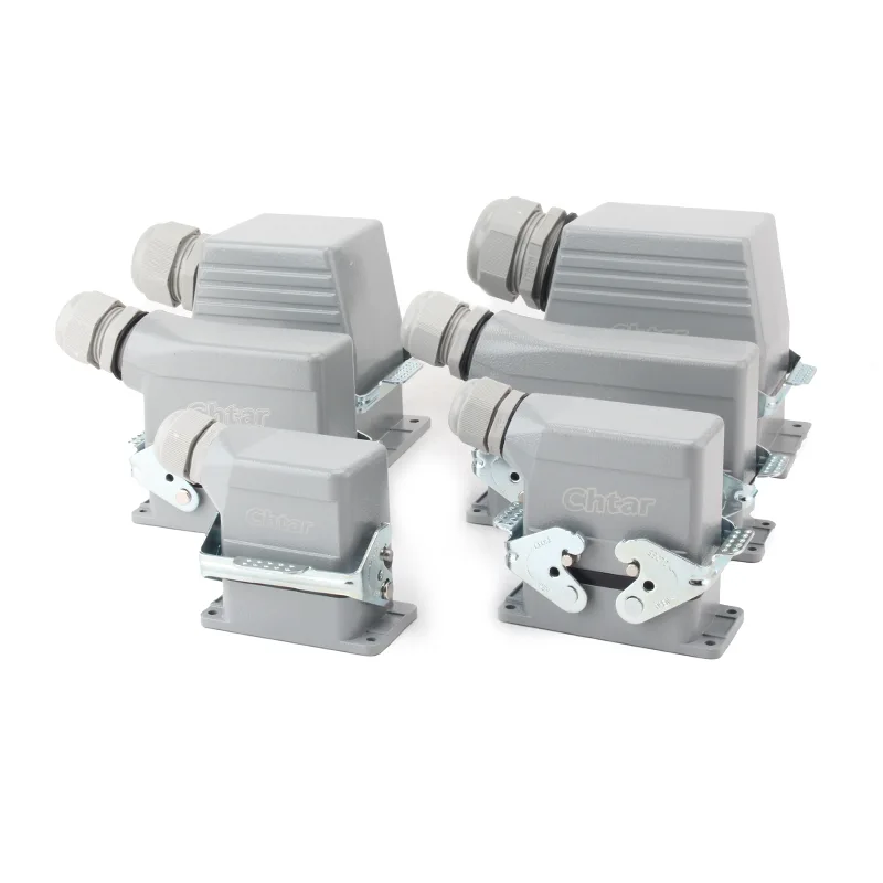 Penyambung Tugas Berat 24 Pin AG tahan lama yang direka dan dihasilkan oleh CHTAR sesuai untuk penyambung HE, HD, HEE, HDD 24-pin dan penyambung tugas berat lain. Penyambung diperbuat daripada aloi aluminium dan disalut dengan serbuk kelabu RAL7037. Arus operasinya ialah 16A, voltan operasi ialah 500VAC, julat suhu operasi ialah -40℃ hingga +125℃ (-40℉ hingga +257℉), kitaran palam dan cabut plag adalah 500 kali, dan gred perlindungan ialah IP65.
