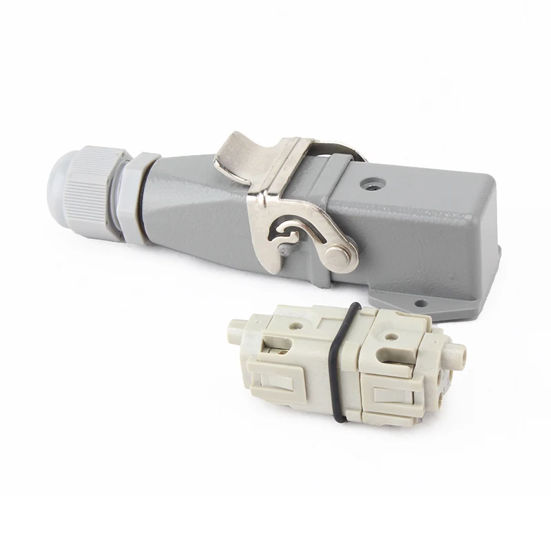 Ia berfungsi dengan penyambung tugas berat Perumahan 10A H3A-MTG. M HA 4 Pin Insert Heavy Duty Connector diperbuat daripada bahan PC kekuatan dan loyang bersalut perak. Pin kami disalut dengan perak, kualiti yang sangat baik dan kekonduksian elektrik yang lebih baik. Ia dipasang dengan getah meterai untuk menjadikannya keadaan kalis air yang lebih baik.