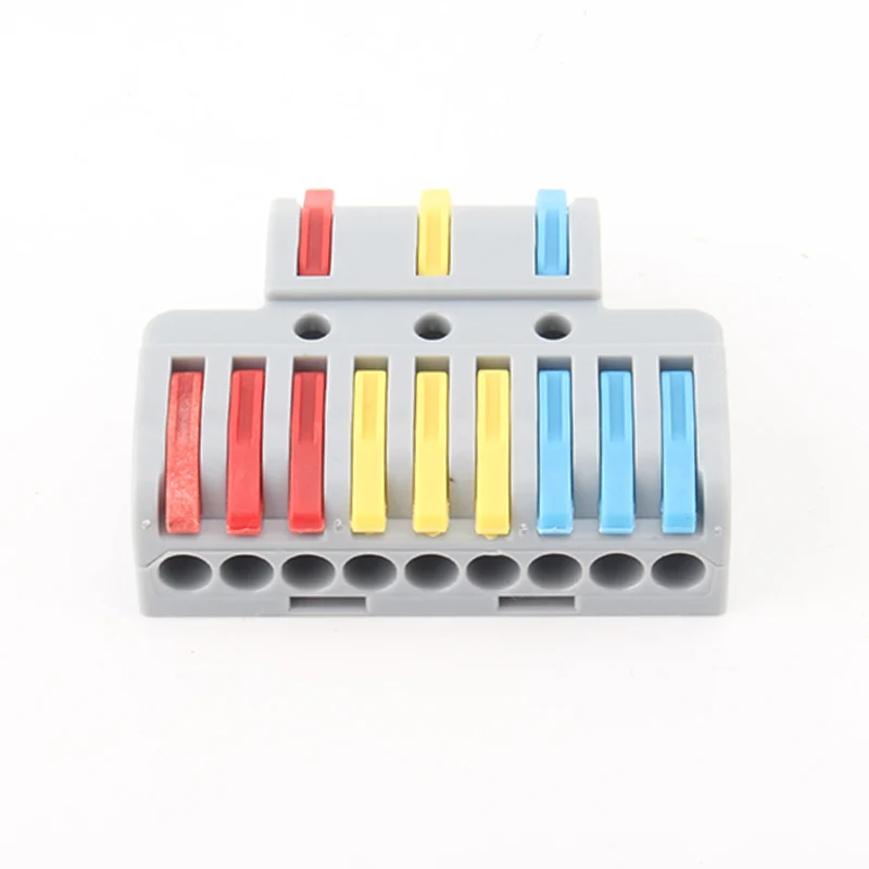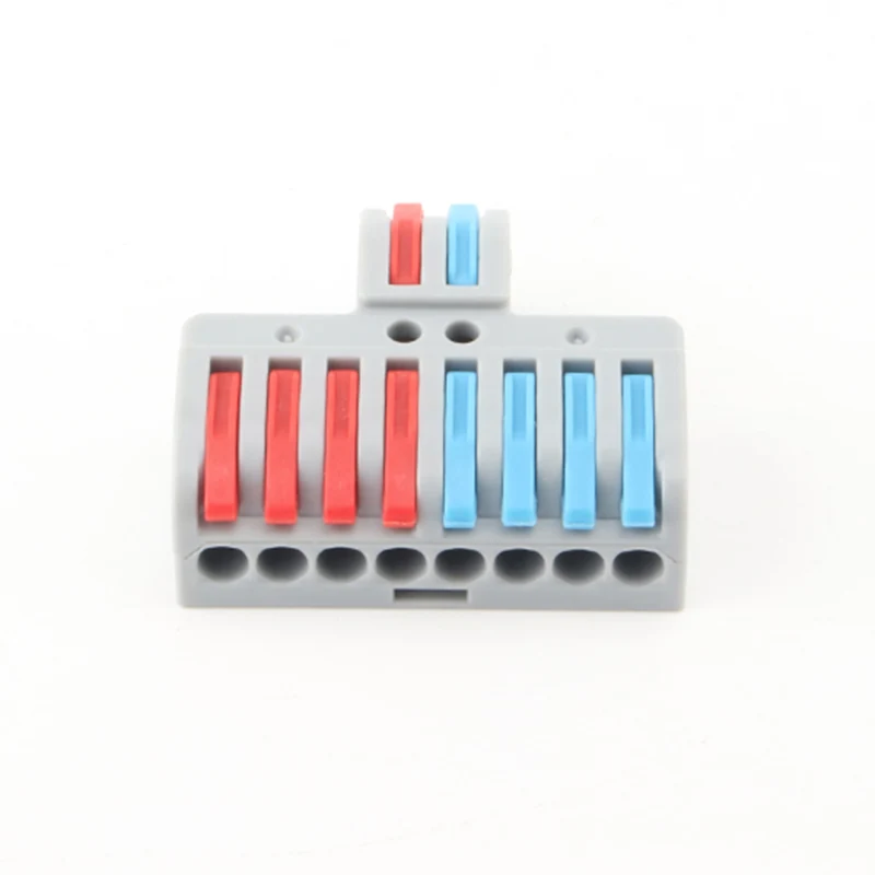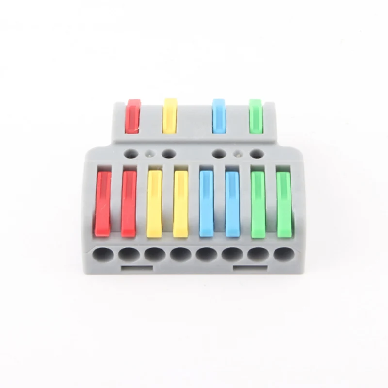 Multi-In Multi Out Splicing Wire Quick Connectors penampilan produk klasik, partition pemegang warna yang berbeza menyedari pembezaan arah pendawaian produk. Beritahu pengguna dengan lebih jelas cara menyambungkan talian cawangan. Lubang ujian yang dikhaskan pada bahagian atas produk memudahkan pelanggan untuk menguji prestasi kuasa hidup selepas pendawaian.