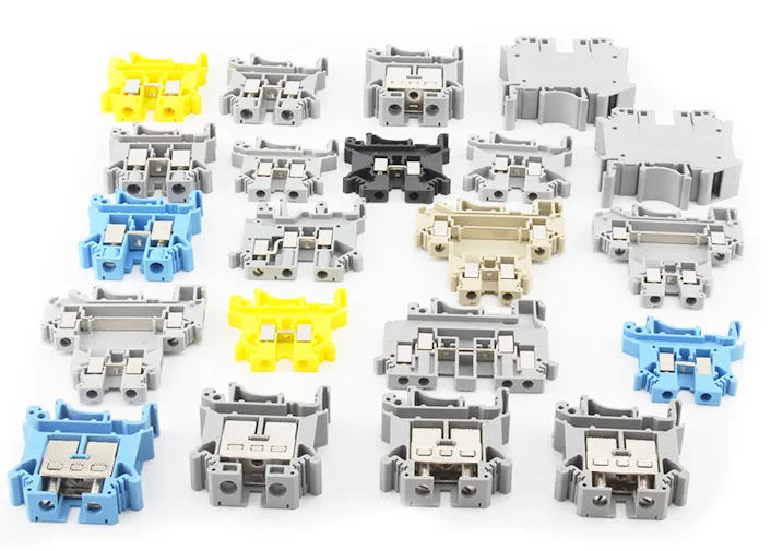 Kilang kami menawarkan penyesuaian warna cangkang OEM untuk kedudukan dan fungsi yang berbeza. Blok terminal rel din skru terkini tersedia dalam warna standard seperti kelabu, kuning, merah, hitam, hijau, coklat dan oren untuk memenuhi pelbagai keperluan pasaran.