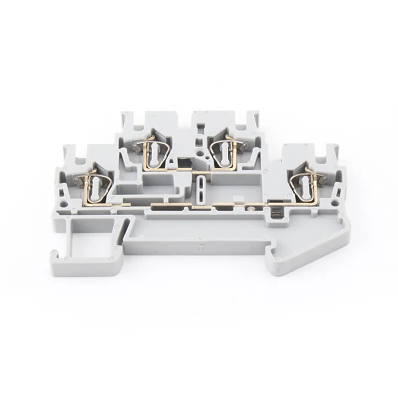 Apabila kami menentukan bahan untuk Blok Terminal Rel Din Spring STTB2.5, matlamatnya ialah prestasi jangka panjang di bawah tekanan. Itulah sebabnya perumahnya adalah poliamida (PA66) dengan penarafan UL 94 V0—ia bukan sahaja tentang kalis api; bahan ini menawarkan keseimbangan kekuatan mekanikal, rintangan rayapan, dan sifat penebat yang stabil, walaupun dalam suhu tinggi. Ia adalah acuan suntikan ketepatan, yang penting untuk mengekalkan ketepatan dimensi yang membolehkan pemasangan snap-on berketumpatan tinggi yang konsisten.
